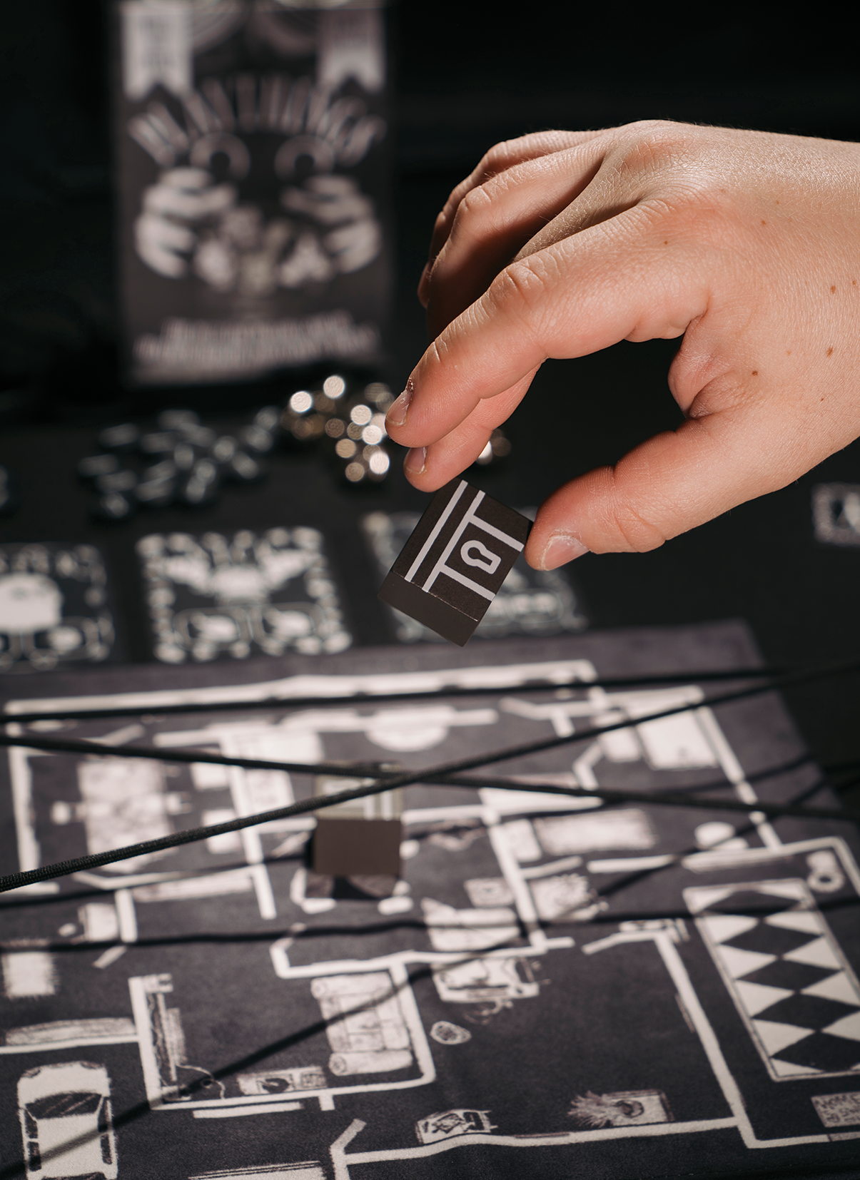 Playthings is a sensory guessing game where players take turns as the Night Terror, hiding toys in rooms on a house map, while the rest ‘sleep’ with their eyes closed. They await daybreak and a chance to guess where their toys have gone. However, they had the chance to gain slivers of information to assist them— such as sliding their fingers under the mat to feel vibrations, or placing jingling bells as sound traps But the true choice is simply whether or not to peek and know for certain. However, even as the players score points individually and cooperatively for finding their toys, the Night Terror scores for their failures, and the ability to guess who did or didn't peek.