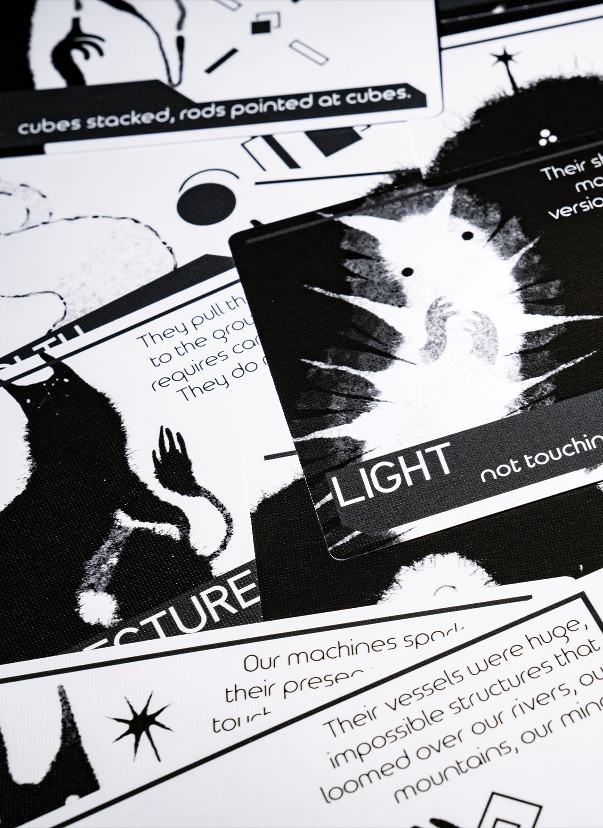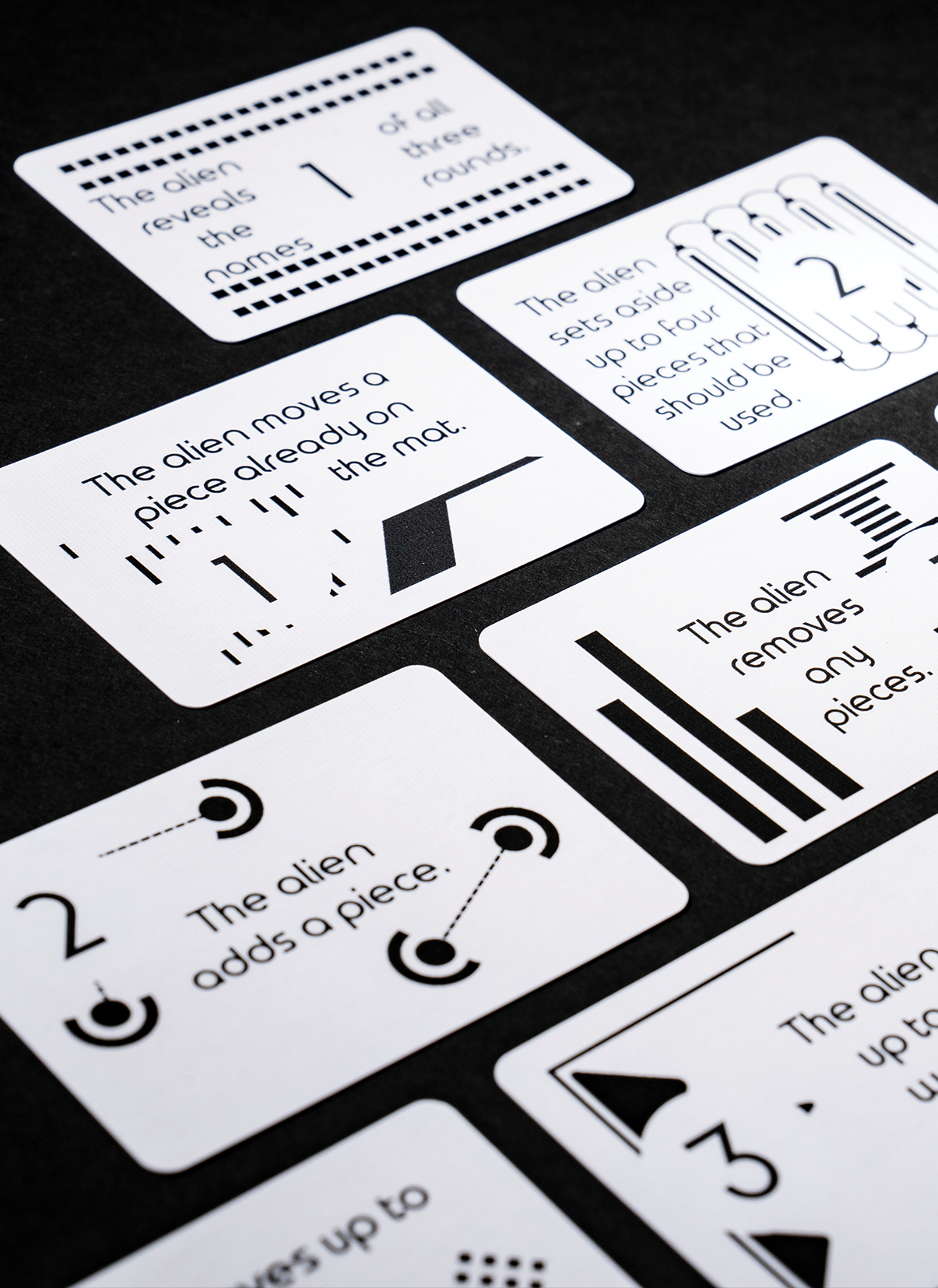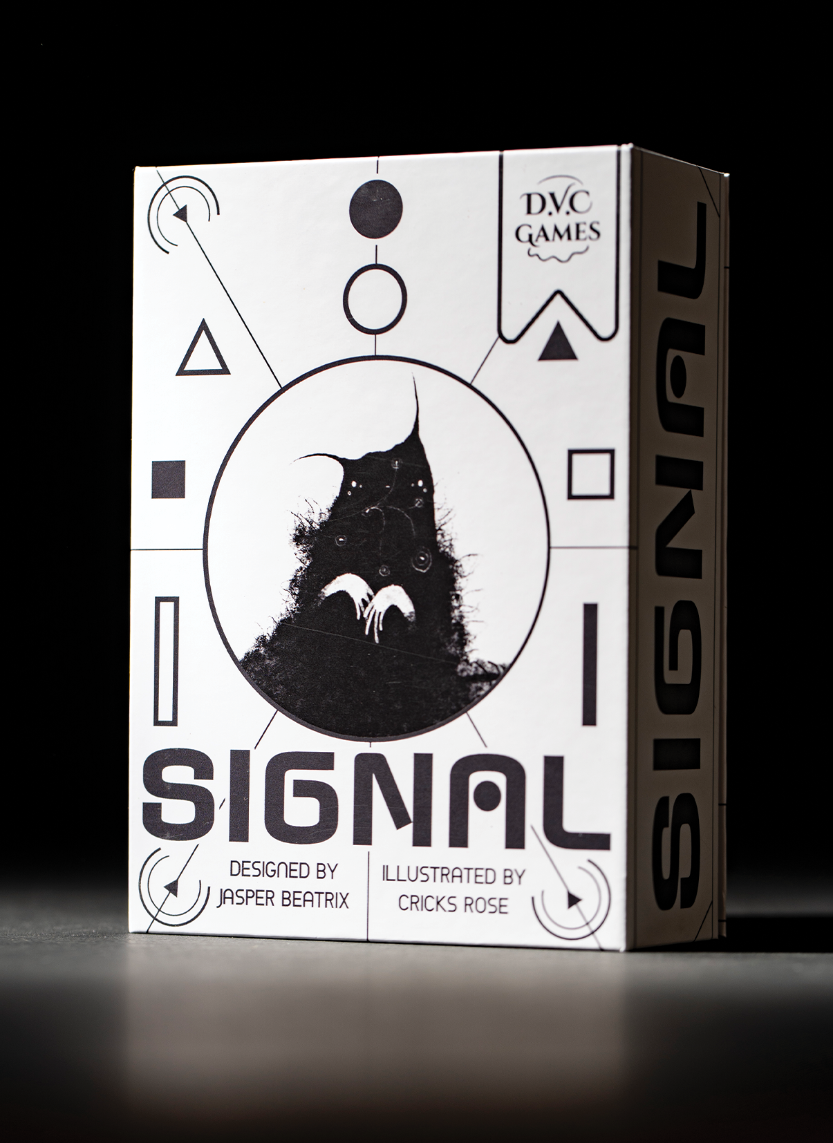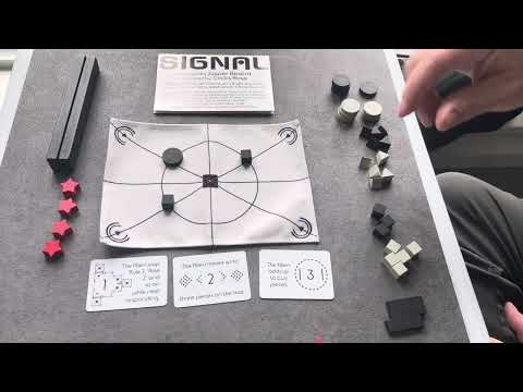 Signal is our take on extraterrestrial contact. It eschews a lot of standard game rules and instead focuses on the experiment of understanding a strange creature. You provide 'inputs', called signals, that are made of an arrangement of abstract shape tokens. One player, the Alien, uses a set of secret rules to turn the input into an output, returning it to you. It is up to you to deduce, with limited chances, what the rules are, and to get the output you seek.