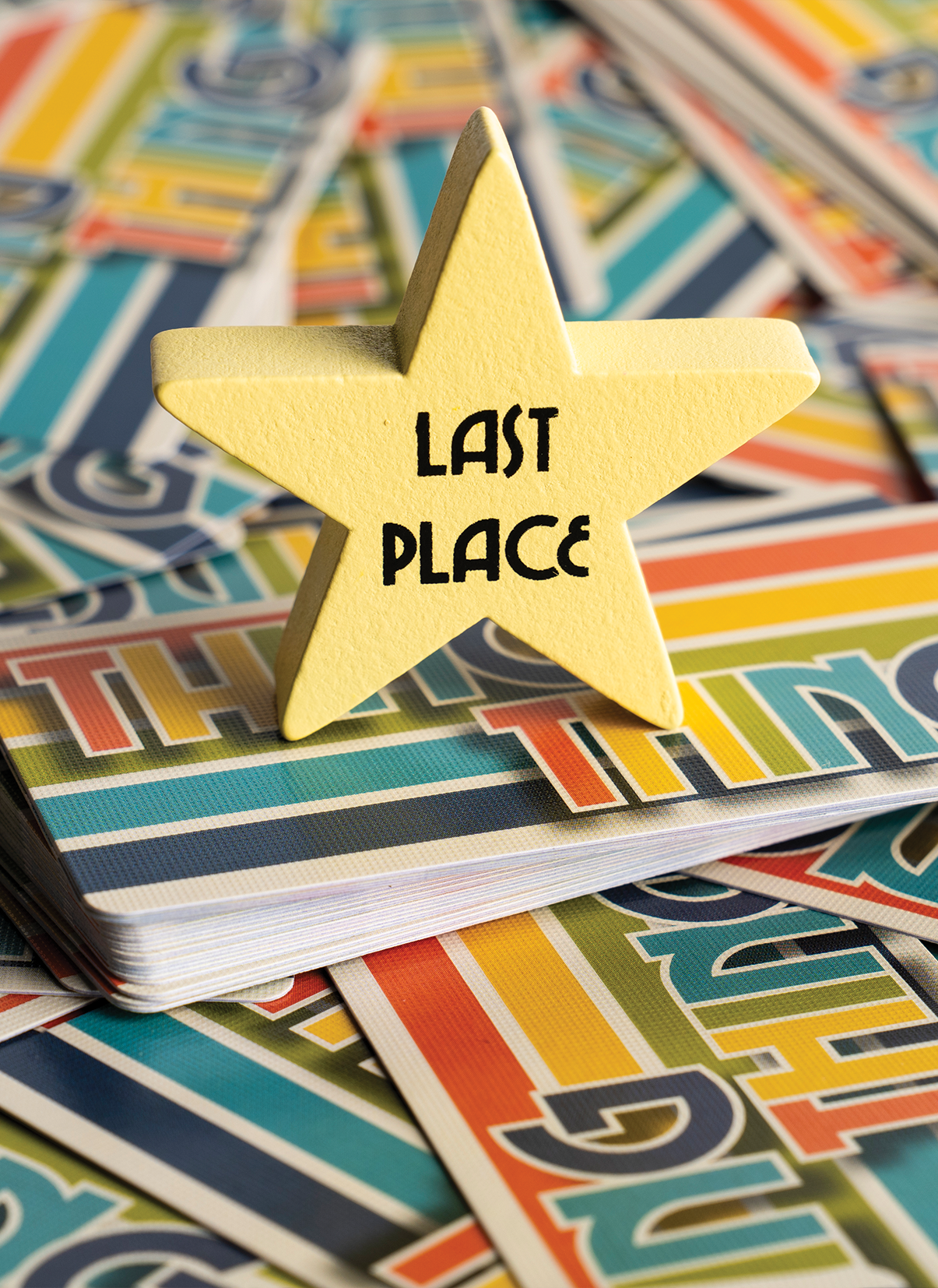 ELEGANT: Simply presented with cards and a wooden ‘Last Place’ star to track the most recent loser.